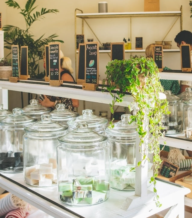 "Descubrimos por primera vez los jabones de carbón activado y aroma de eucalipto vertidos a mano de Santo Cabo mientras explorábamos las tiendas en Flora's Farm"